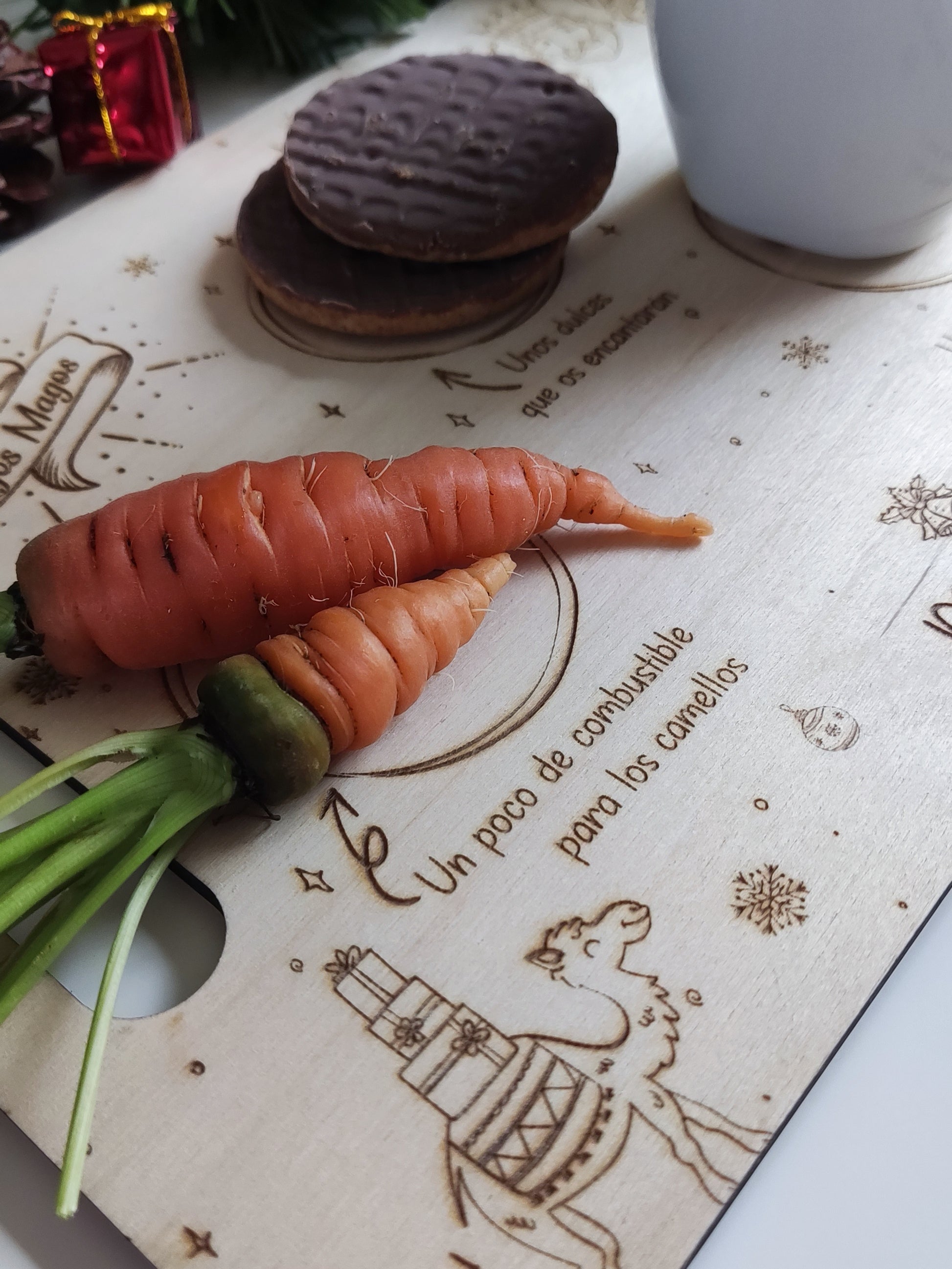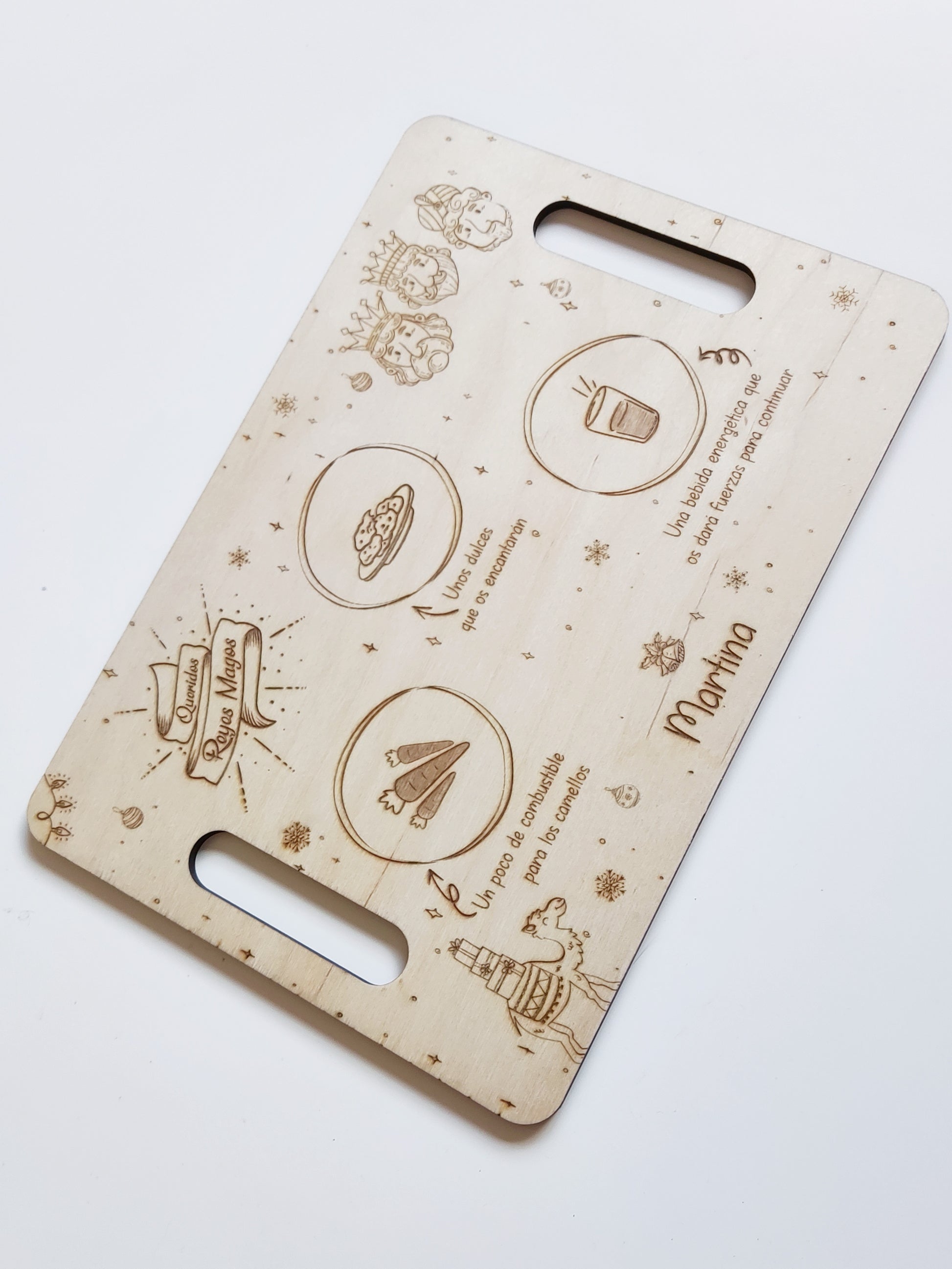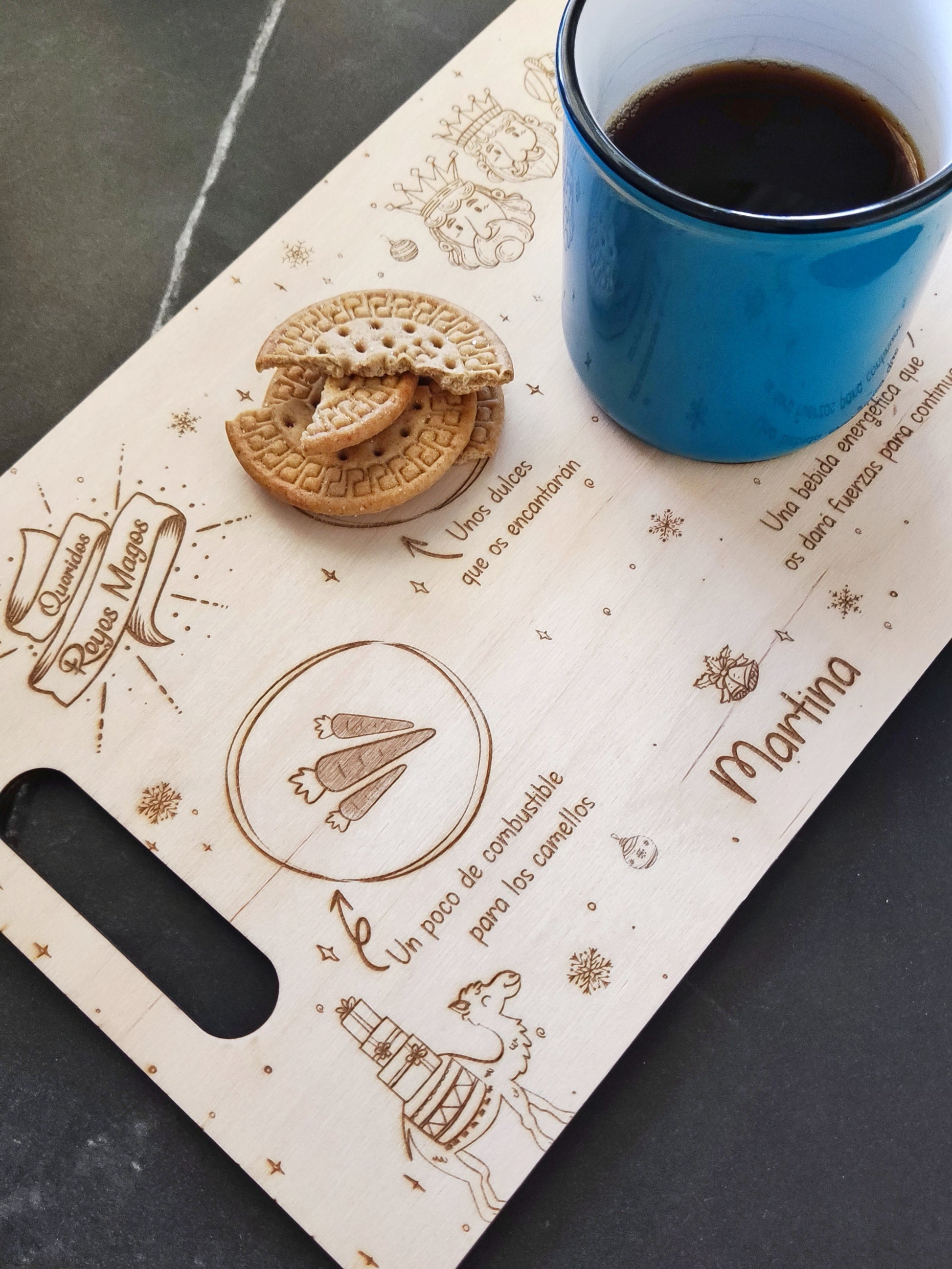 Puedes elegir entre un diseño único (por una cara) o por los dos lados: uno para Nochebuena y otro para la Noche de Reyes. Así podréis usarla dos veces y hacer de esta tradición algo vuestro, año tras año. 🎄👑